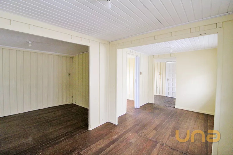 Residência de madeira com 02 quartos, banheiro social, sala com copa anexa, cozinha, piso assoalho de madeira. Edícula com lavanderia e quarto. Amplo pátio com vagas de garagem.