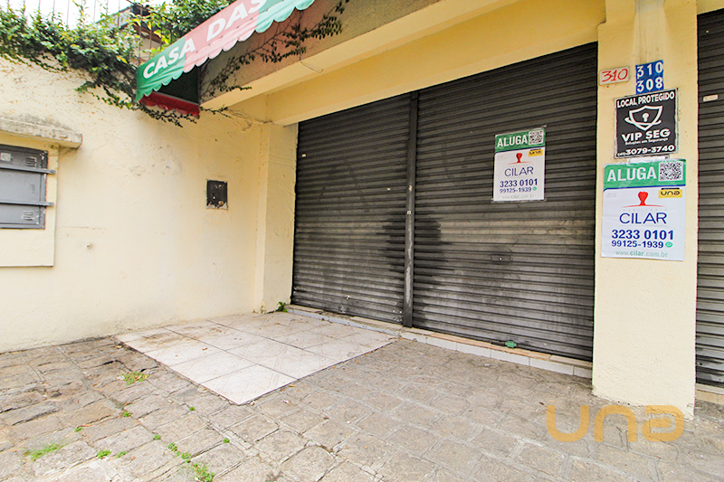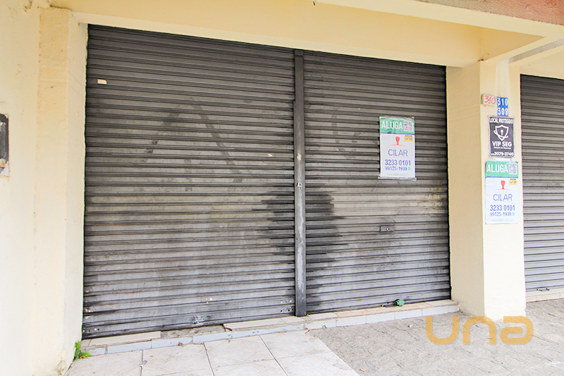 Loja com porta de vidro e porta cortina de aço, com área de 36m²;