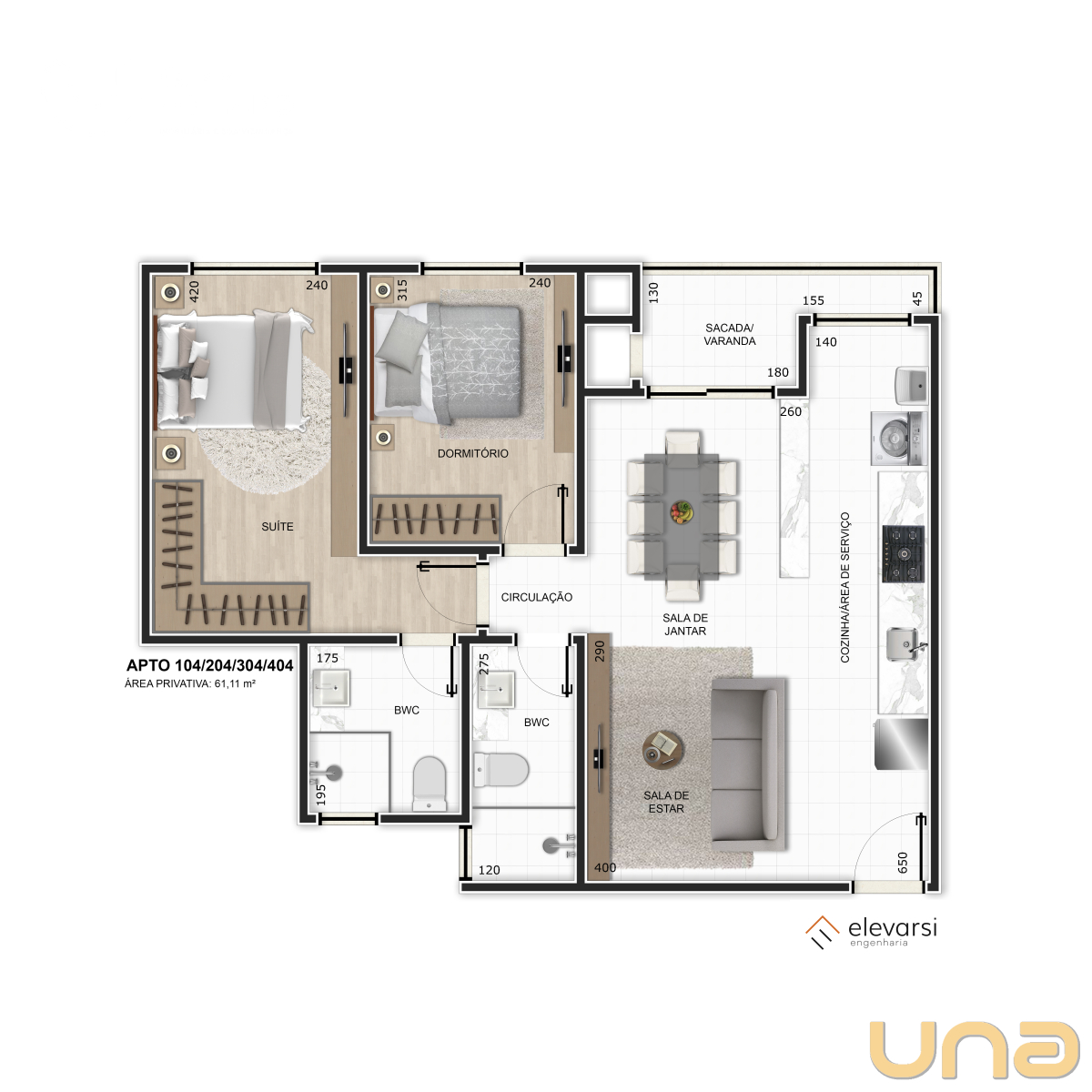 • Será entregue com salão de festas mobiliado, sistema de interfone nos apartamentos com portão eletrônico.