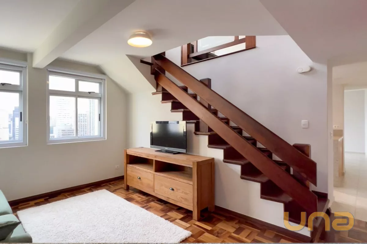 Detalhes: EXCELENTE APARTAMENTO DUPLEX, REFORMADO, NO BAIRRO CENTRO (HÁ 01 QUADRA DO ALTO DA RUA XV) PRÓXIMO AO HOSPITAL DAS CLÍNICAS E UFPR. PISO INFERIOR: SALA, COZINHA COM ARMÁRIOS E FOGÃO 04 BOCAS, COPA COM MESA E 05 CADEIRAS, DEPÓSITO. PISO SUPERIOR: ESCRITÓRIO, BWC SOCIAL COM BALCÃO, BOX DE VIDRO E AQUECIMENTO À GÁS, 02 DORMITÓRIOS. PISO TACO COM LIXAMENTO NOVO.
