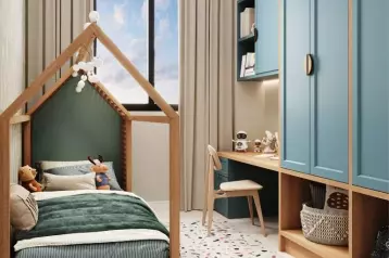 Cozinha com armários; fogão cooktop e forno; balcão com acabamento em granito; nos dois quartos armários planejados; ótima planta; cortina em todos os ambientes.