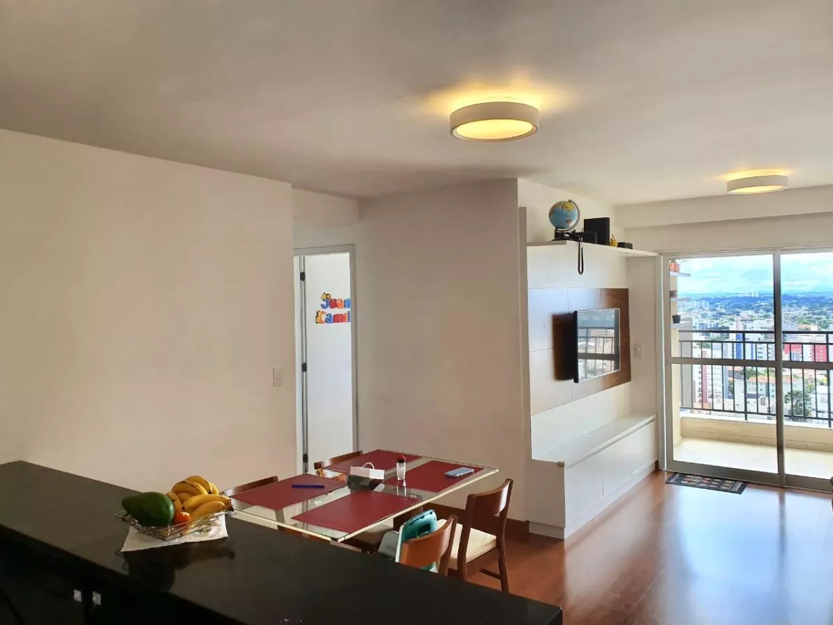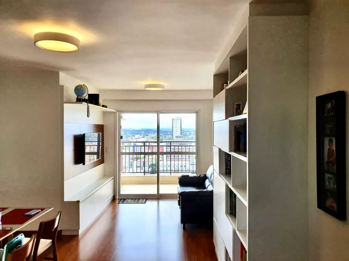 Ampla sala em L p 2 ambientes com uma bela sacada e linda vista da cidade.