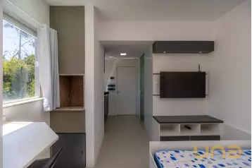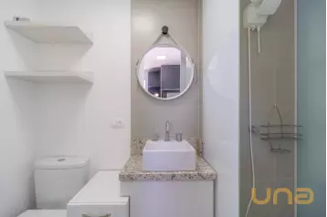 Sala de estar e jantar conjugadas com lavabo e ampla sacada;