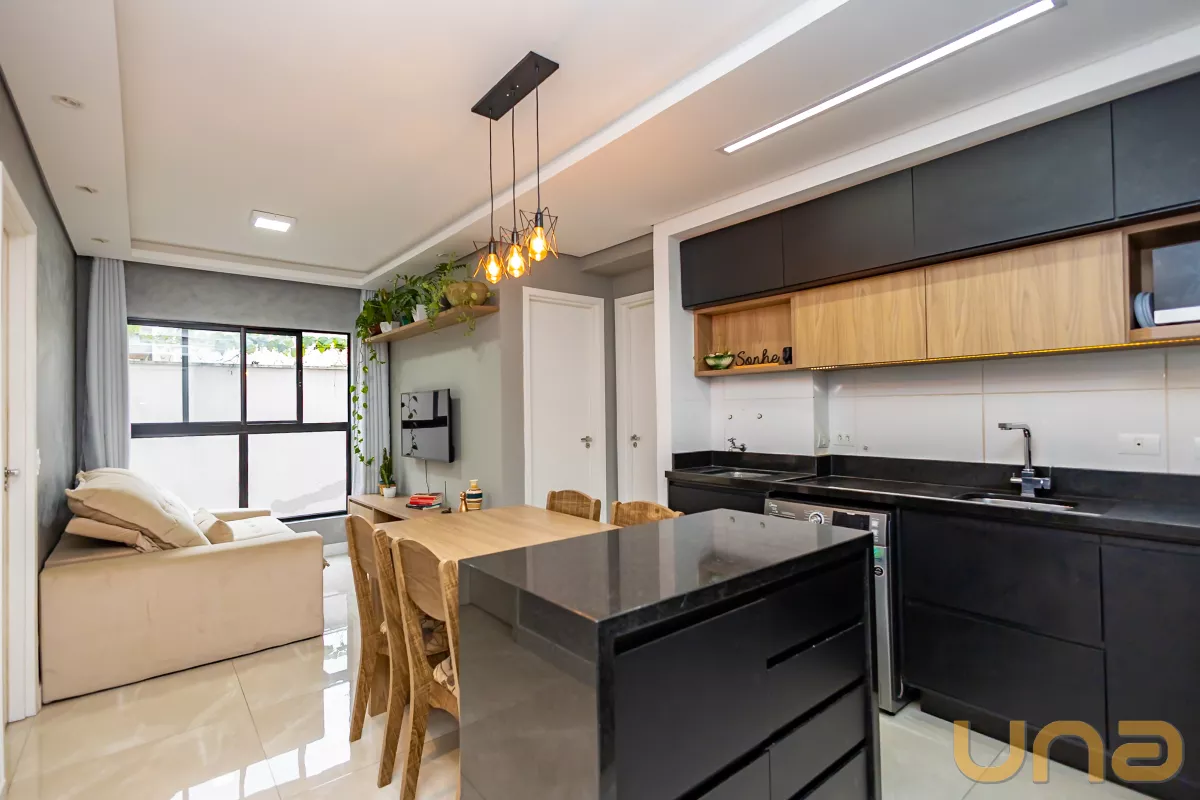 O apartamento possui cozinha em modelo americano com móveis planejados, forno e cooktop,