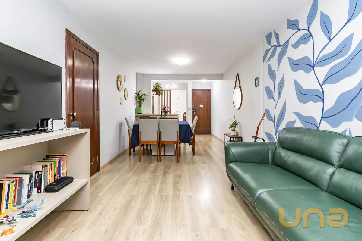 O apartamento conta com dois dormitórios, ambos equipados com armários embutidos, proporcionando organização e funcionalidade. A cozinha americana, planejada com bom gosto, é perfeita para quem gosta de cozinhar e receber amigos, integrando-se à sala de jantar e criando um ambiente agradável e social. Além disso, uma sala de estar íntima oferece um espaço tranquilo para relaxar após um longo dia.
