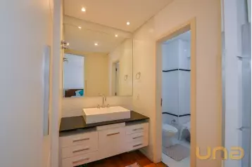 São 2 banheiros um social e um privativo, cozinha com móveis planejados, área de lavanderia separada com tanque, armários, uma vaga de garagem livre no subsolo.