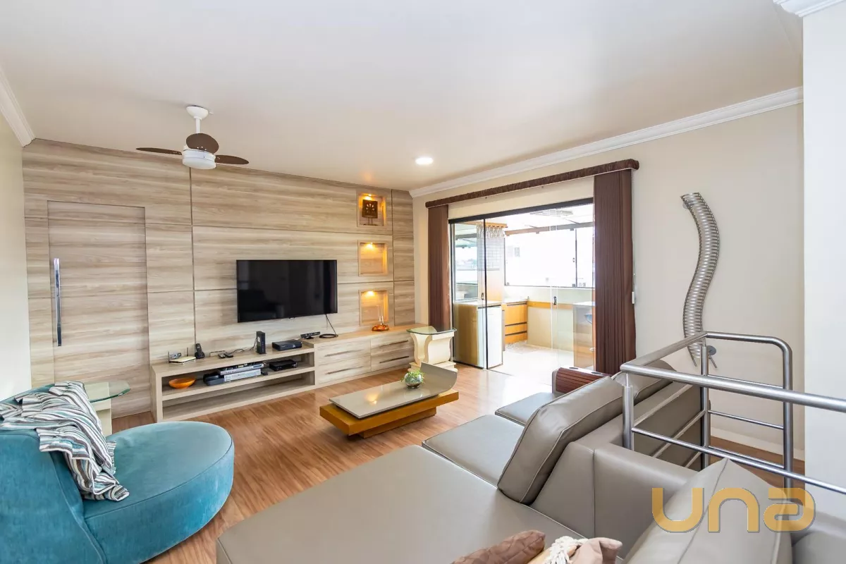 Piso superior conta com uma sala íntima, lavabo e escritório. Além de espaço externo com cobertura de vidro com churrasqueira, pia e espaço de convivência. Tudo isso com uma ótima incidência de sol e uma bela vista do Ecoville!