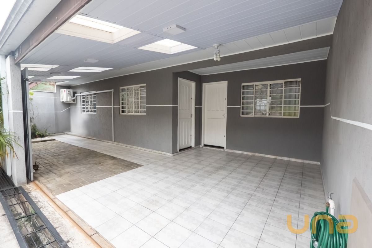 Casa térrea medindo 57m², sendo 33m² averbados, construída em terreno de 94m², composta por 2 dormitórios, 1 banheiro social, sala de estar com ar condicionado, cozinha com armários, torneira elétrica e depurador de ar, lavanderia e 2 vagas de garagem, sendo 1 coberta com portão eletrônico. Esse imóvel foi todo reformado e com poste novo da Copel.