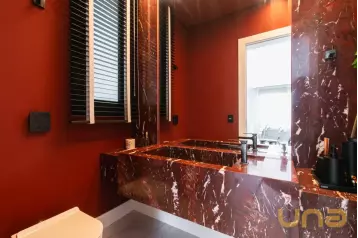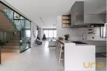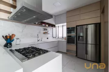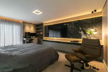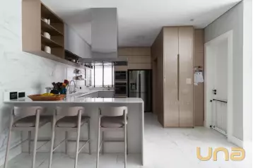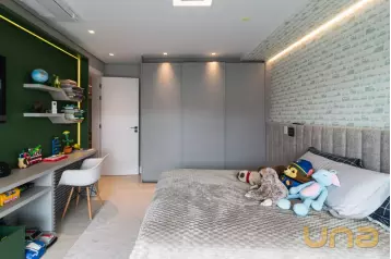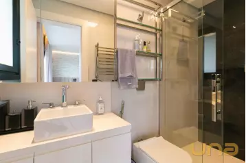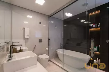 - Suíte 1: armários, piso laminado, persianas e banheiro com box em vidro temperado.