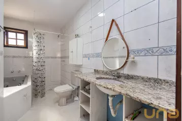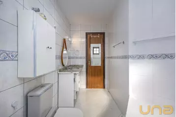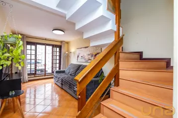 Ambientes íntimos: no segundo andar contamos com 3 quartos com persianas automatizadas, sendo um deles uma suíte com área de closet. Ambos os banheiros possuem aquecimento no piso e aquecimento a gás nas saídas de água. No corredor há um excelente espaço para um roupeiro ou espaço de armazenamento. A casa já foi preparada para instalação de painéis fotovoltaicos, possui acabamentos de alto padrão, portas da Gralha Azul e a de entrada em ACM. Ainda conta com 2 vagas de garagem sendo uma coberta com luz automatizada.