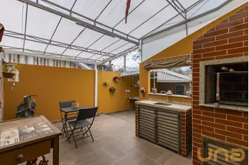 Ambientes sociais e de serviço: no primeiro piso contamos com sala para 2 ambientes e cozinha integrada com piso de porcelanato, lavanderia separada e lavabo. Ainda possui um quintal que percorre os fundos e lateral da casa. No terceiro piso contamos com uma churrasqueira a carvão coberta, um terraço descoberto que pode ser integrado com a casa, já com preparação para jacuzzi, e um espaço de depósito.