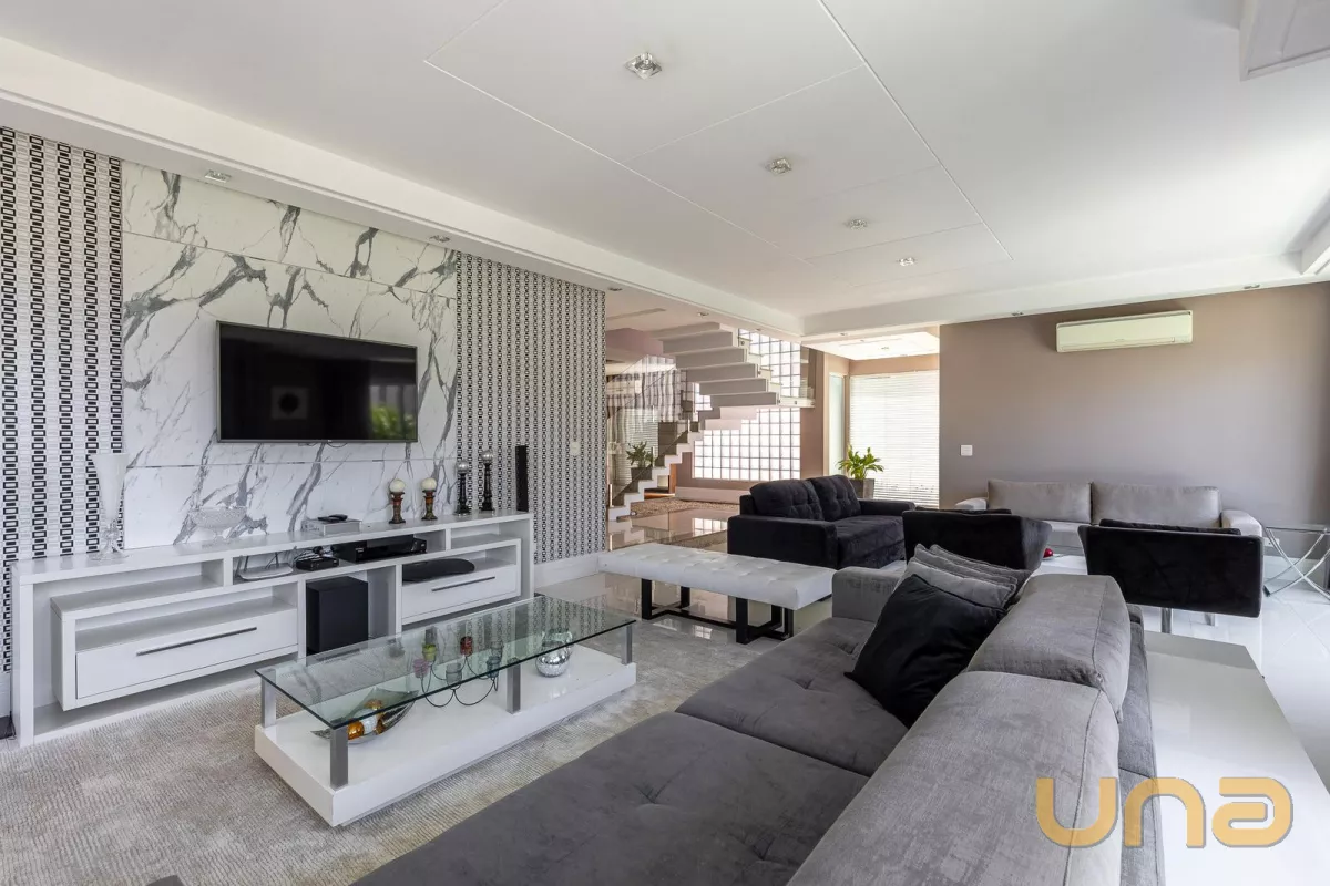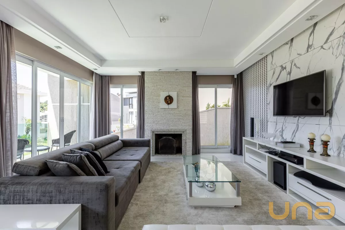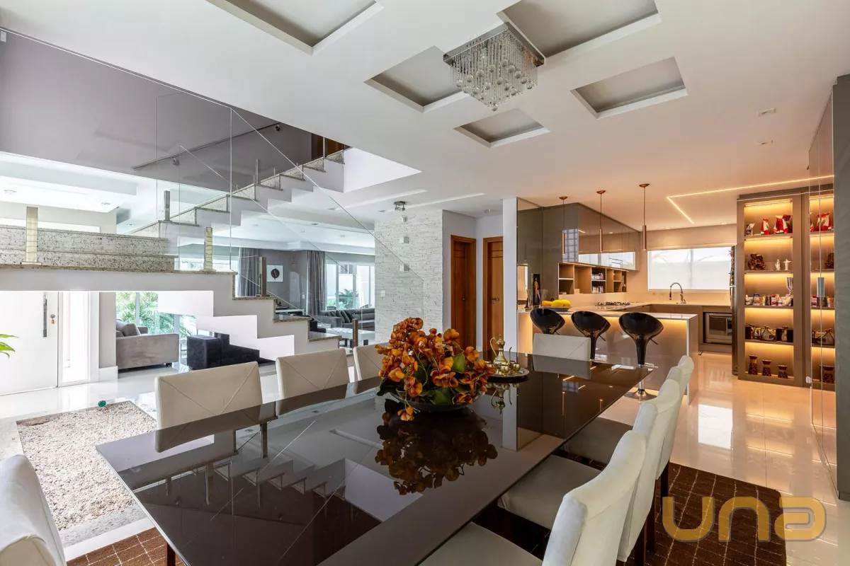 Casa de alto padrão localizada na região norte de Curitiba, no Condomínio Residencial Terra da Mata, local privilegiado no Ecoville, com fácil acesso ao centro da cidade, próximo ao Parque Barigui e ao Park Shopping Barigui. A casa está finamente mobiliada, dividia em 4 quartos (sendo 2 suítes e 2 demi-suítes), ampla sala de estar e TV com lareira e sacada, sala de jantar, cozinha americana, espaço gourmet com churrasqueira, sendo todos os ambientes com ar-condicionado split. Amplo quintal com piscina aquecida e garagem para 4 carros.