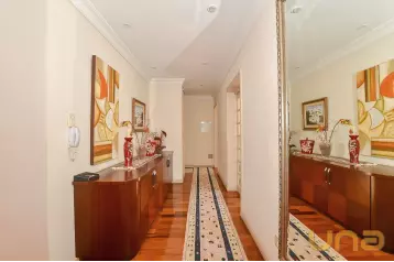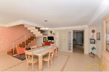 Sala Ampla: Sala de estar e jantar integradas à cozinha gourmet com churrasqueira a carvão, ideal para receber amigos e familiares.Área de Serviço,lavaboElevador Privativo: que da acesso a todos pavimentos .1 Suíte Master Decorada: Conta com amplo closet planejado e banheira, oferecendo conforto e privacidade.1 Suíte Decorada: Com armários planejados, pronta para uso.Subsolo Funcional: 1 banheiro e 2 quartos que podem ser utilizados como escritório, dormitório, academia, depósito, entre outros.Garagem para 4 Carros: 2 vagas cobertas.Amplo espaço lateral de jardim. Espaço para piscina.Infraestrutura do Condomínio: