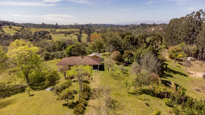 Aproximadamente 40 alqueires, sendo subdivido em 5 matriculas individuais, todas lado a lado, onde a principal possui, portão eletrônico, casa de caseiro e a casa Sede com aproximadamente 200 m² privativos, com bons quartos sendo 1 suíte. Churrasqueira, varanda em toda a lateral da sede, garagem para até 3 veículos, Ao lado da casa possui uma grande área de gramado, com pomar de diversas espécies frutíferas.